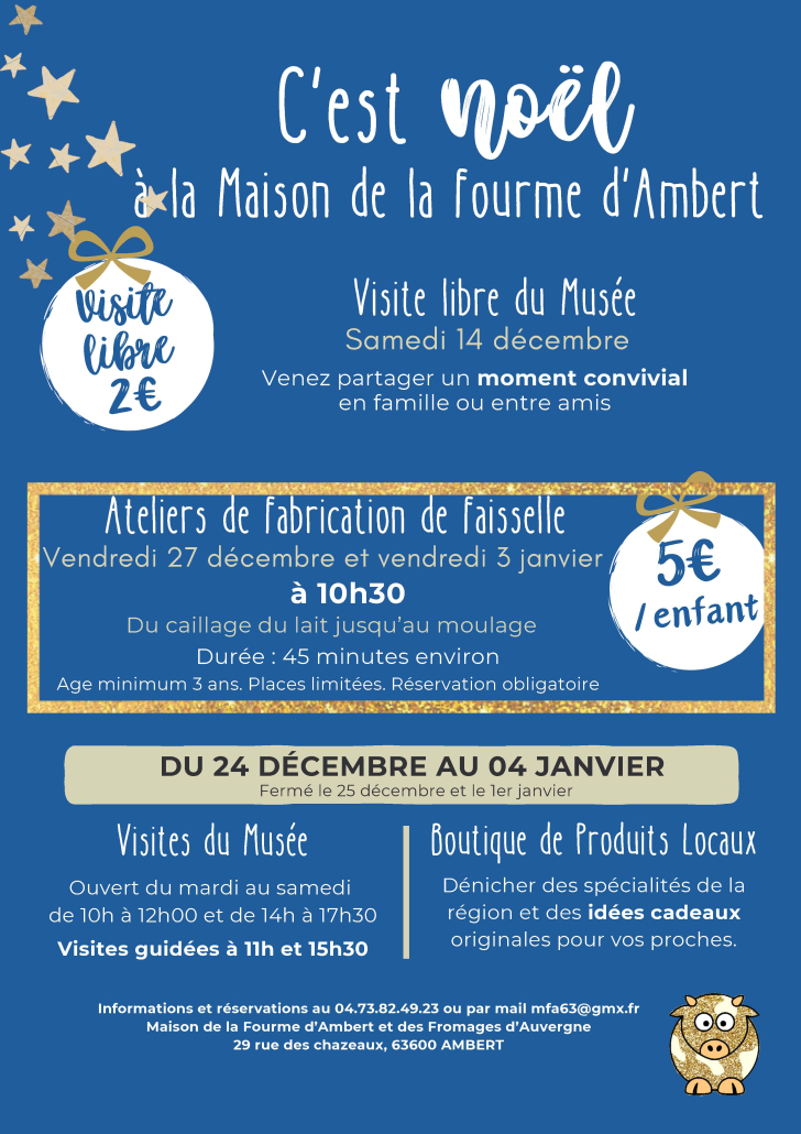 Accueil1 > Agenda2 > Atelier « fabrication de faisselle » à la Maison de la FourmeAtelier « fabrication de faisselle » à la Maison de la FourmeDate de l'événement : Le vendredi 27 décembre 2024Lieu : Maison de la Fourme - 29 rue des chazeaux, 63600