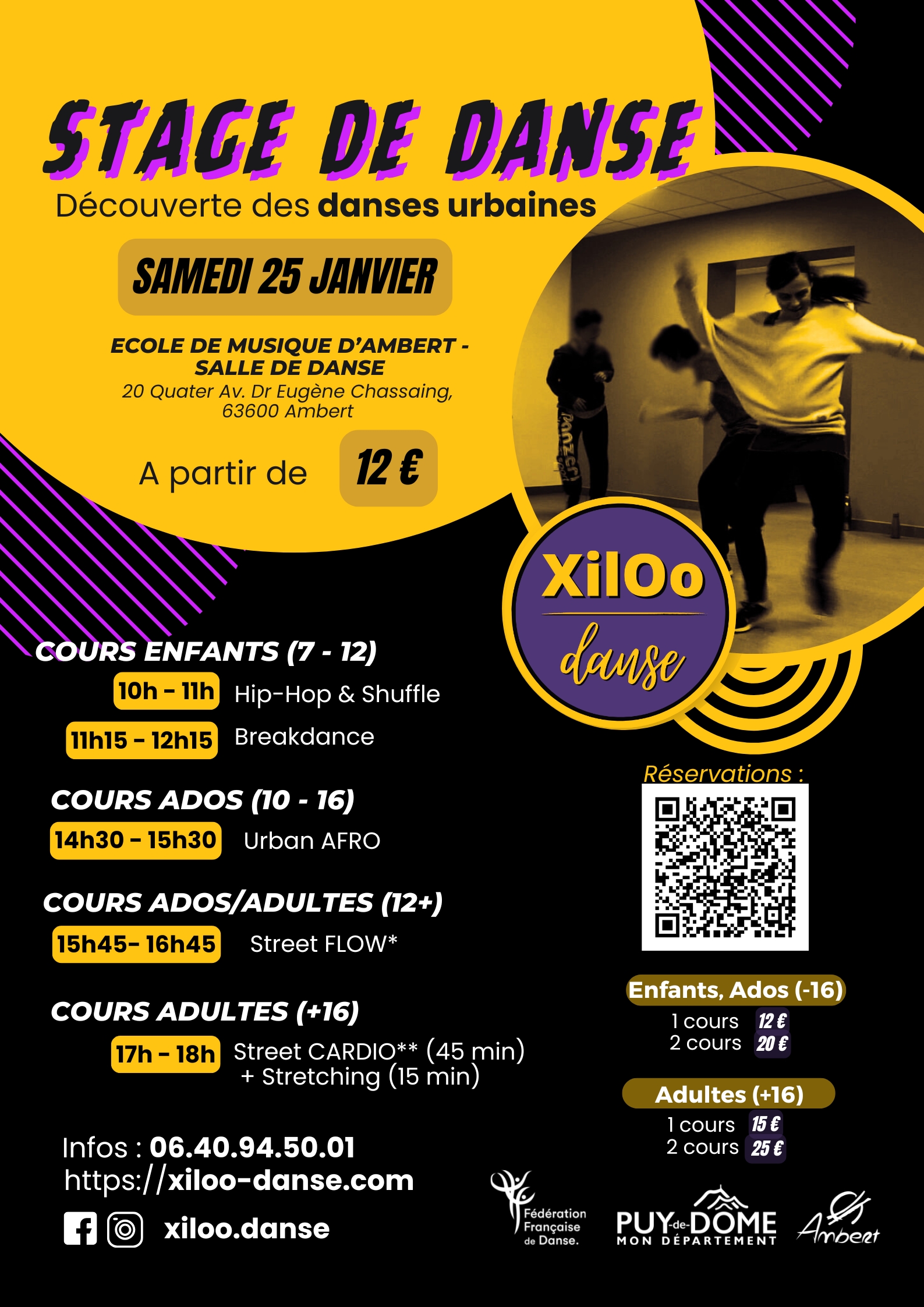 Une journée pour découvrir ou approfondir les bases des danses urbaines, adaptée à tous les âges et niveaux ! 🌟📍 Lieu : École de musique d’Ambert – salle de danse